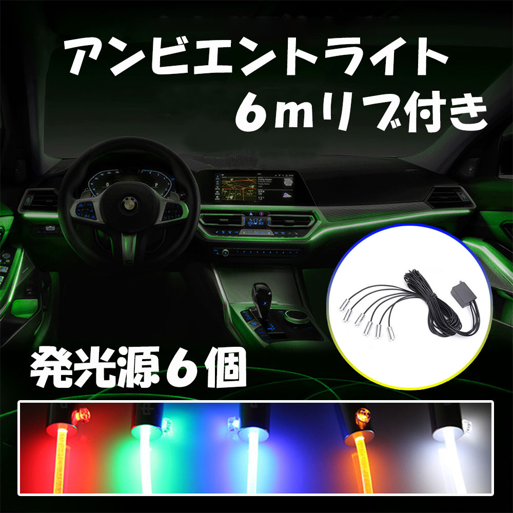 - LED ライト アンビエントライト イルミネーション リブ付き 6m USB接続 発光源 6個