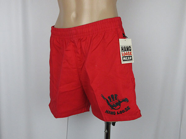 - 水着 男子★トランクス★水泳パンツ★HANG LOOSE ハングルーズ★03629★レッド 赤★Mサイズ★日本製★ウエストゴム緩み
