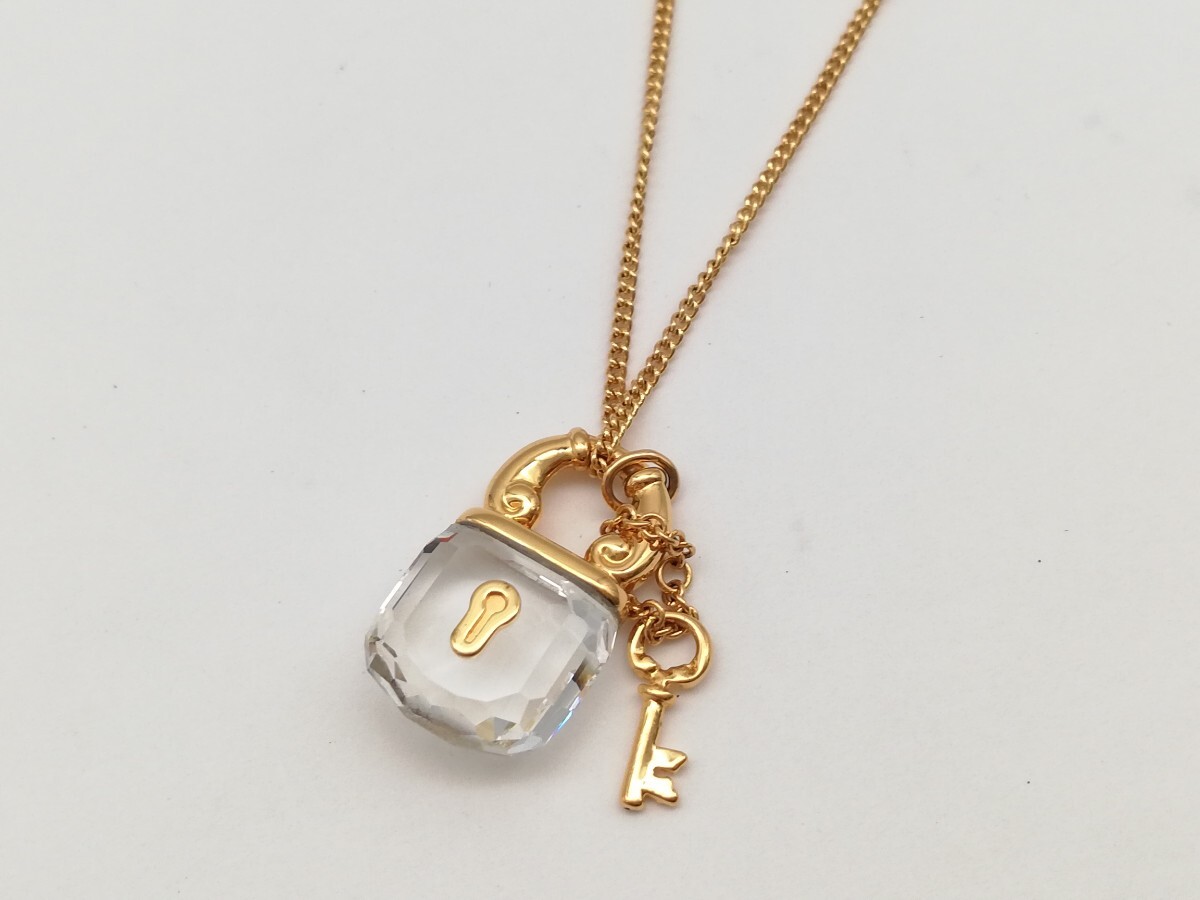 - 美品 SWAROVSKI ネックレス クリスタル パドロックモチーフ 鍵 南京錠 ゴールド ペンダント スワロフスキー
