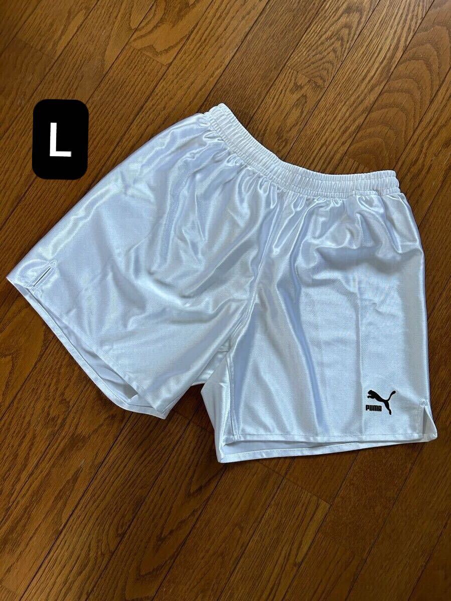 - 【希少旧ロゴ】Lサイズ PUMA ゲームパンツ ショートパンツ ホワイト白 ハーフパンツ ショーツ プーマ レトロビンテージ サッカー