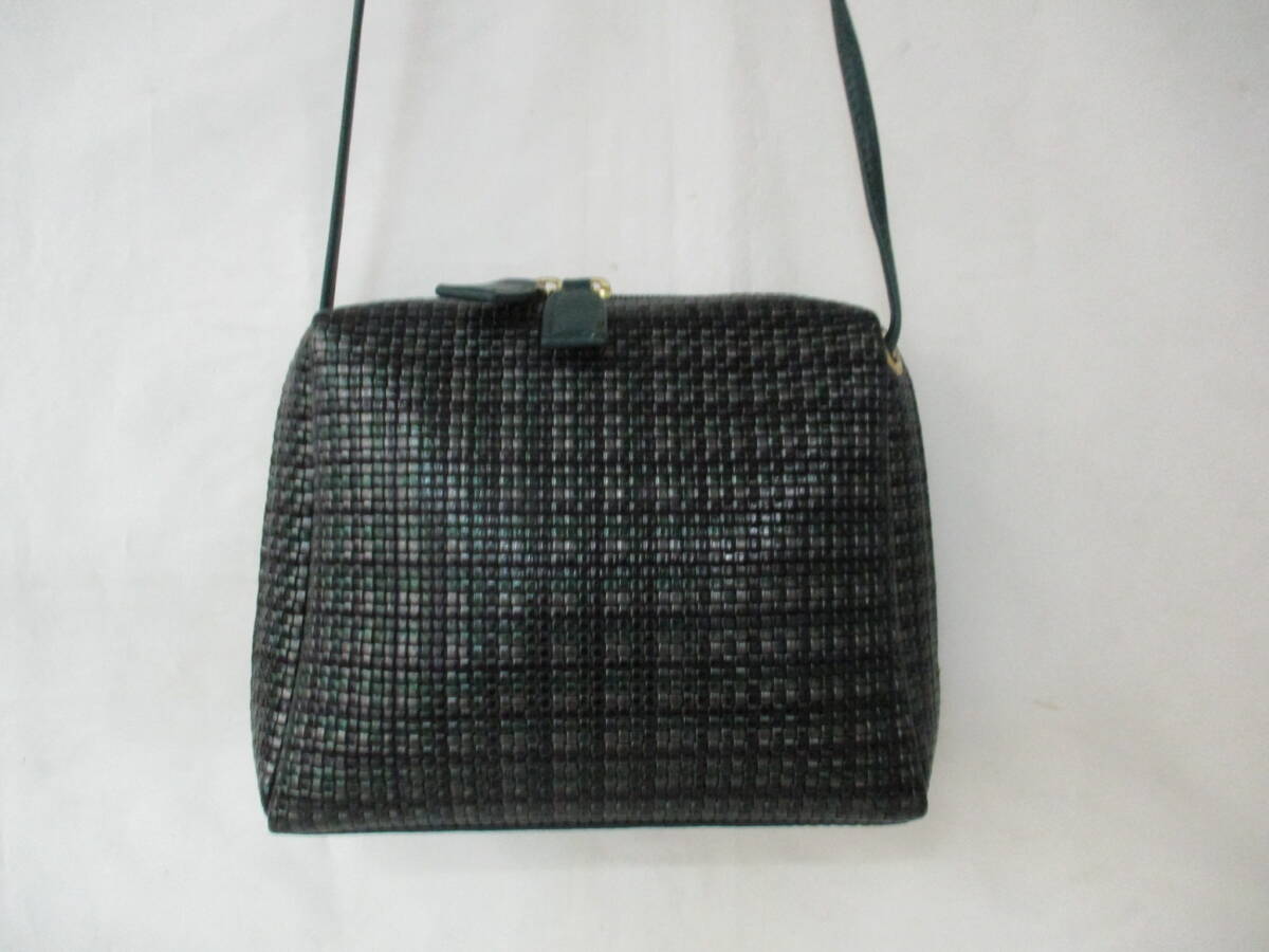 - レトロ ショルダーバッグ シグリーン系 軽量 ポシェット (管理19-80LB)