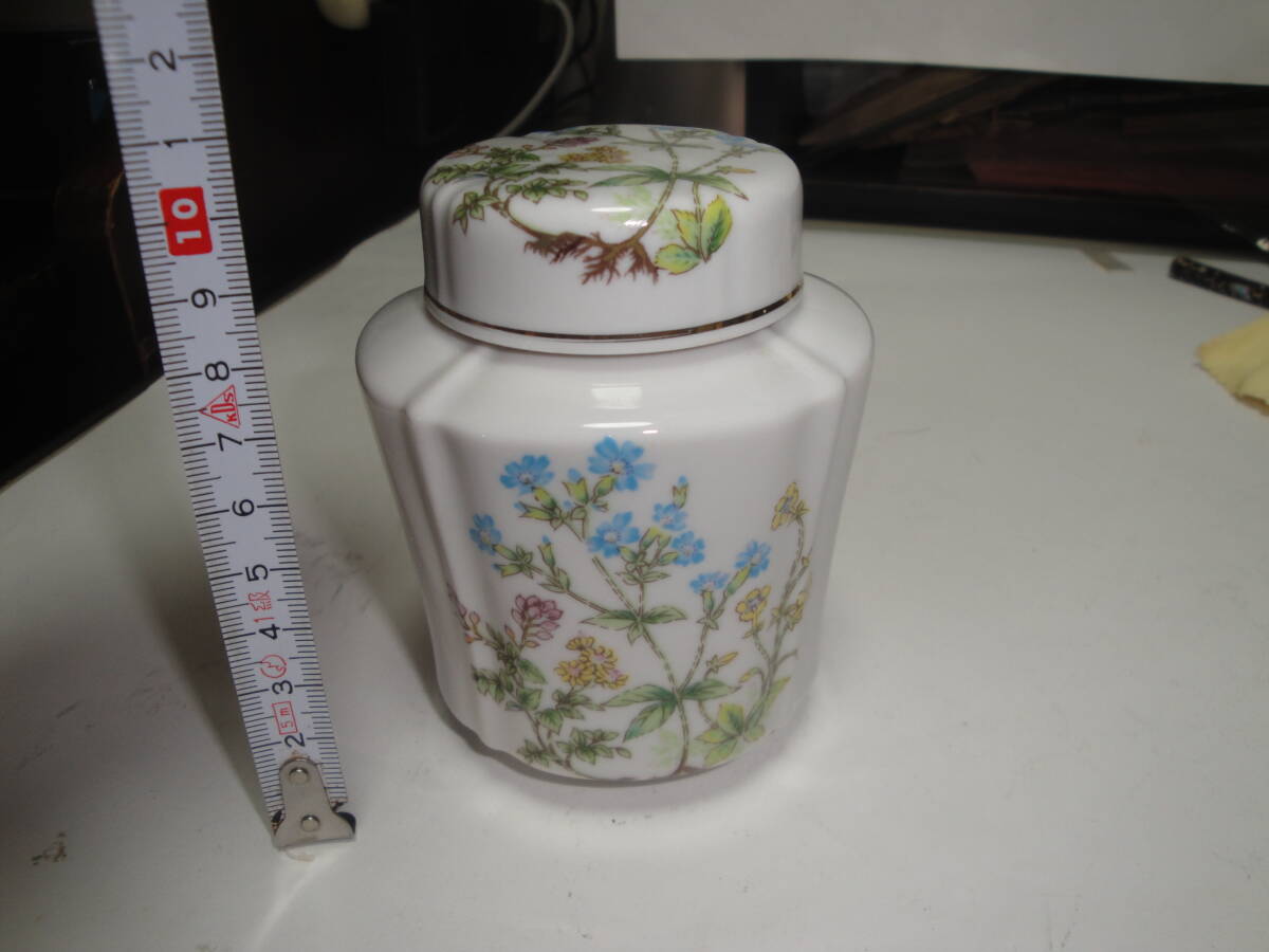 > ☆磁器:紅茶入空容器《 花柄(MADE FOR MELROSES LTD. エジンバラ スコットランド・サイズ約10.5cm・重さ約165g)》☆送料660円 置物