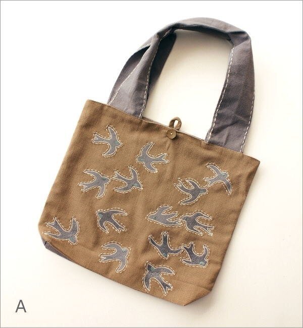 - トートバッグ コットン 刺繍 おしゃれ 軽量 かわいい レディース スワロー刺繍トートバッグ 【Aカラー】 送料無料(一部地域除く) kan2112a