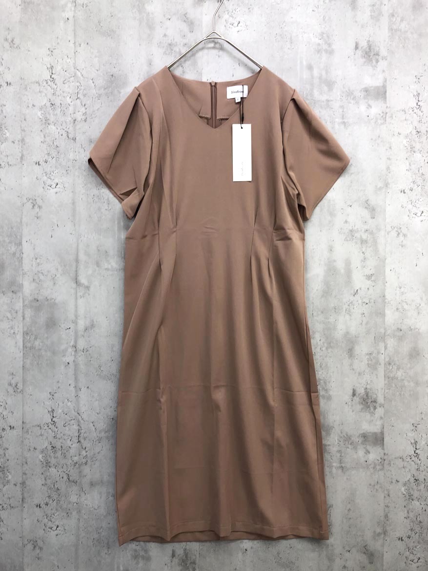 > ゆうパケットOK 新品 Diosfront ディオスフロント 袖タック Vネック ワンピース sizeS/キャメル ■◆ ☆ ffb7 レディース