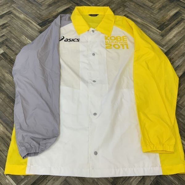 > QS665 実物 神戸マラソンSTAFFジャケット asics アシックス ホワイト グレー イエロー サイズフリー