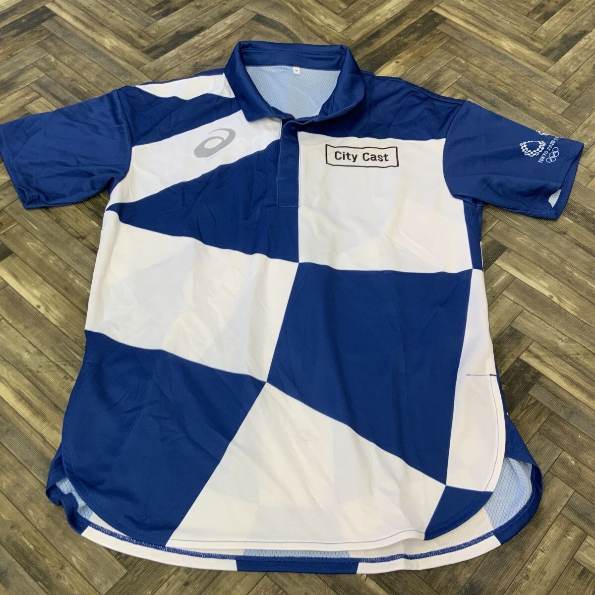 - QS1362 asics アシックス 半袖ポロシャツ スポーツウェア 東京オリンピック2020 ブルー ホワイト メンズM