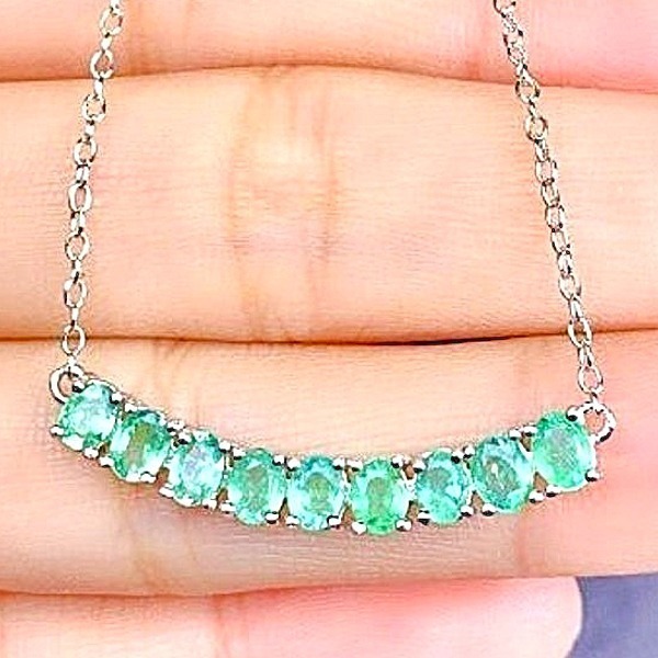 天然エメラルドペンダントネックレス、3×4mmの天然エメラルドが9個、クラビクルチェーン、925スターリングシルバー