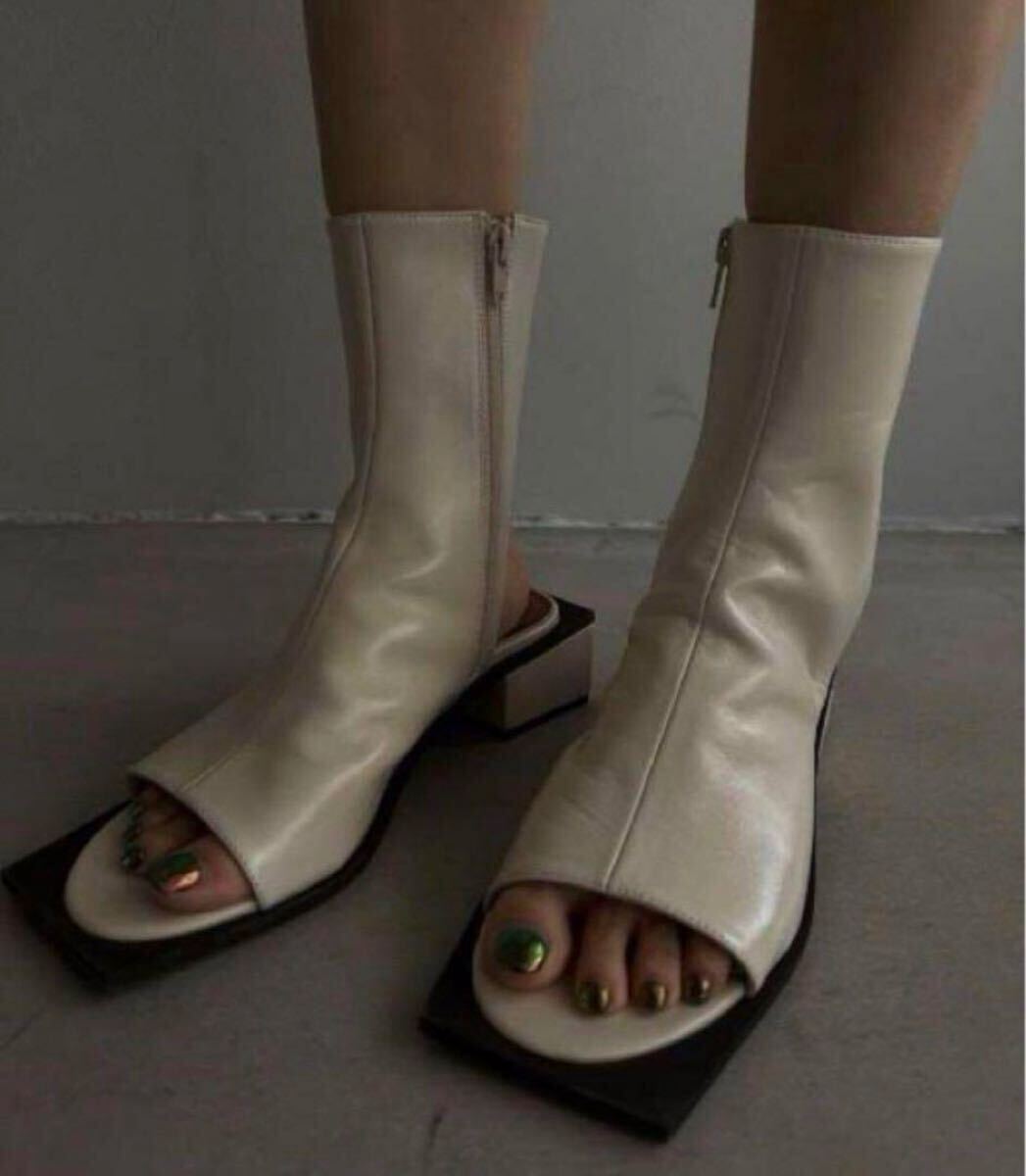 > Ameri アメリヴィンテージ MEDI SCOOP OUT SHORT BOOTS 定価¥23,100円 サンダル ショートブーツ アイボリー L