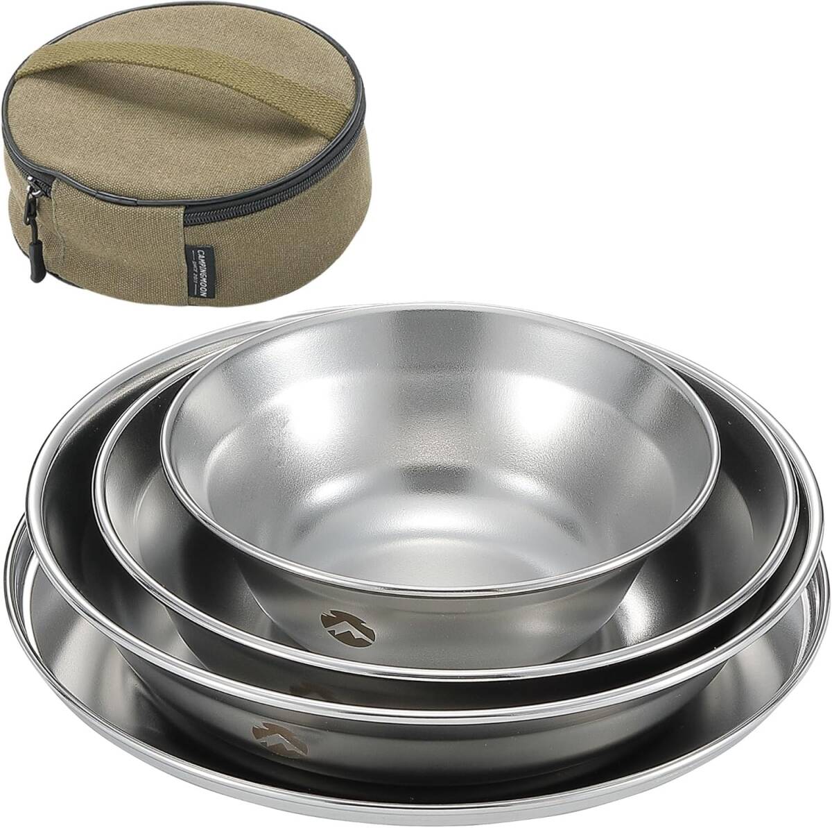 - 【新品】キャンピングムーン(CAMPING MOON) テーブルウェア キャンプ プレート ステンレス 食器 セット 帆布ケース付き