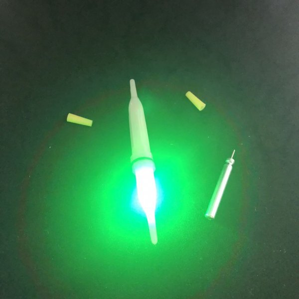 - 超高輝度 グロー グリーン 緑色 水中 集魚ライト タチウオ、アシ、ササイカ、アオリイカ、サバ リチウム電池1本付 半透明 点滅