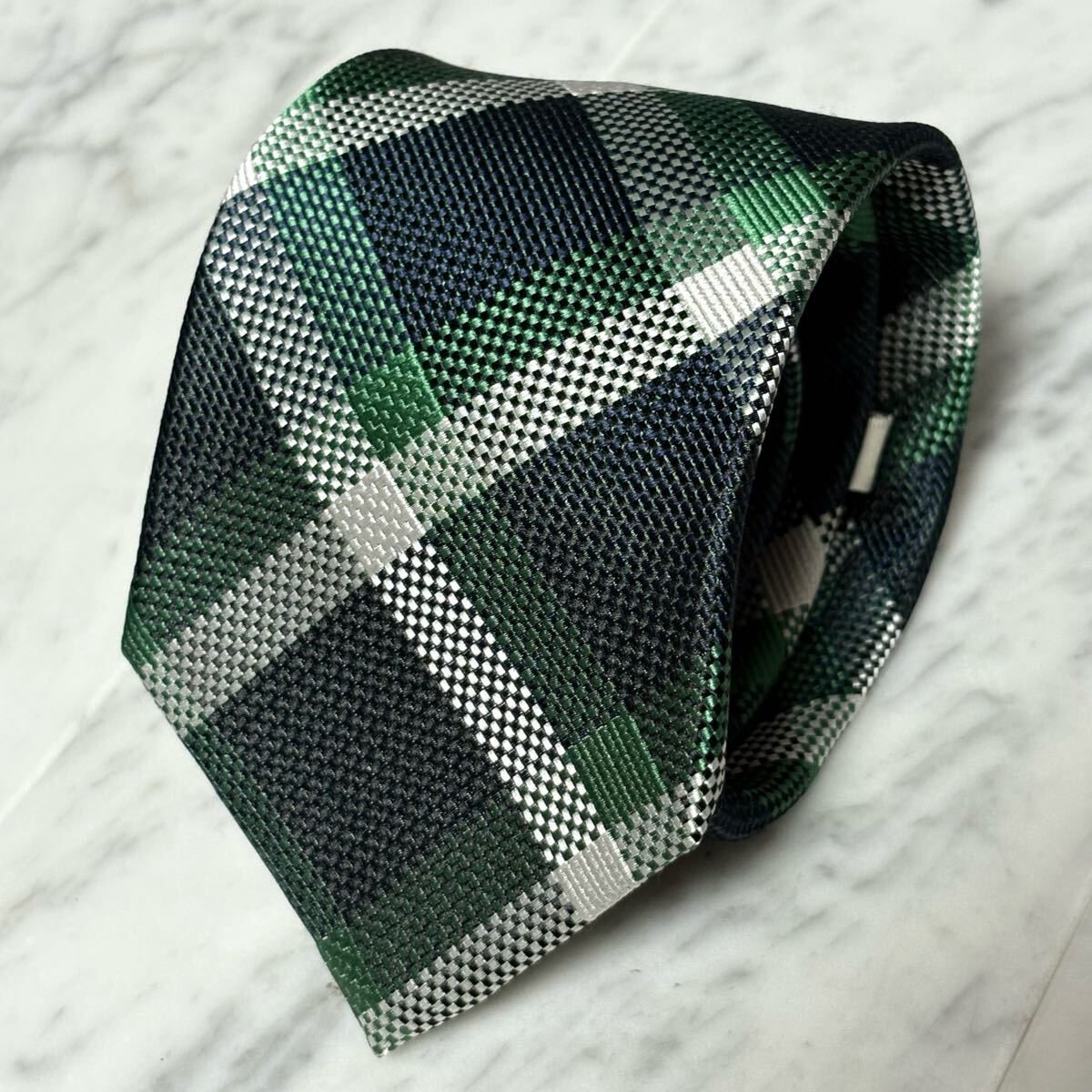 - 【美品】 999円~ MALE&Co ネクタイ ネイビー グリーン チェック柄 (B4)