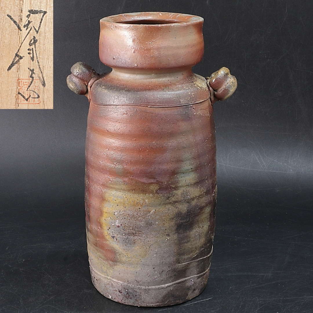 - ◆◇木村陶峰 備前焼 耳付花入 花瓶 花器 フラワーベース 共箱 茶道具 華道具◇◆