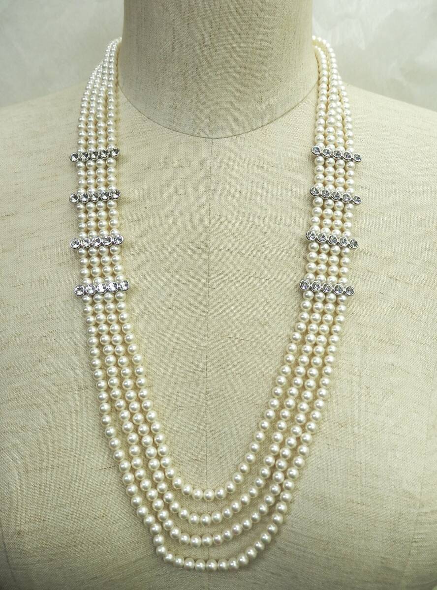 - SILVER留め具 パール・真珠 4連 ネックレス 63cm 約85g 現状品 売り切り