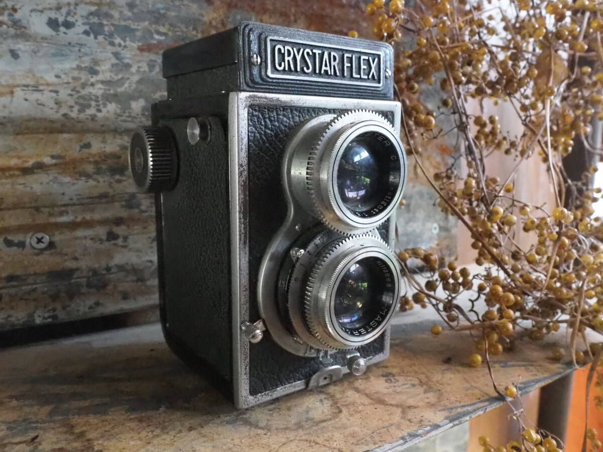 - 【二眼レフカメラcrystar flex】古道具アコーディオン骨董アンティークシャビー玩具文具フィルム蛇腹カメラ昭和レトロインテリア