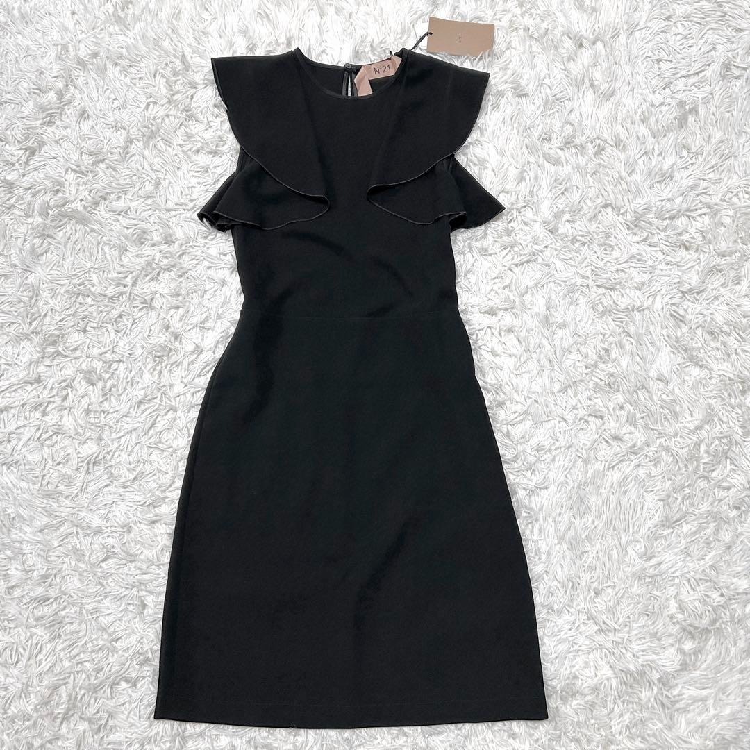 - 新品タグ付 定価7.5万円 N°21 ヌメロ ヴェントゥーノ 21SS フリル ドレス ブラック 黒 イタリア製 ワンピース ノースリーブ ロング丈