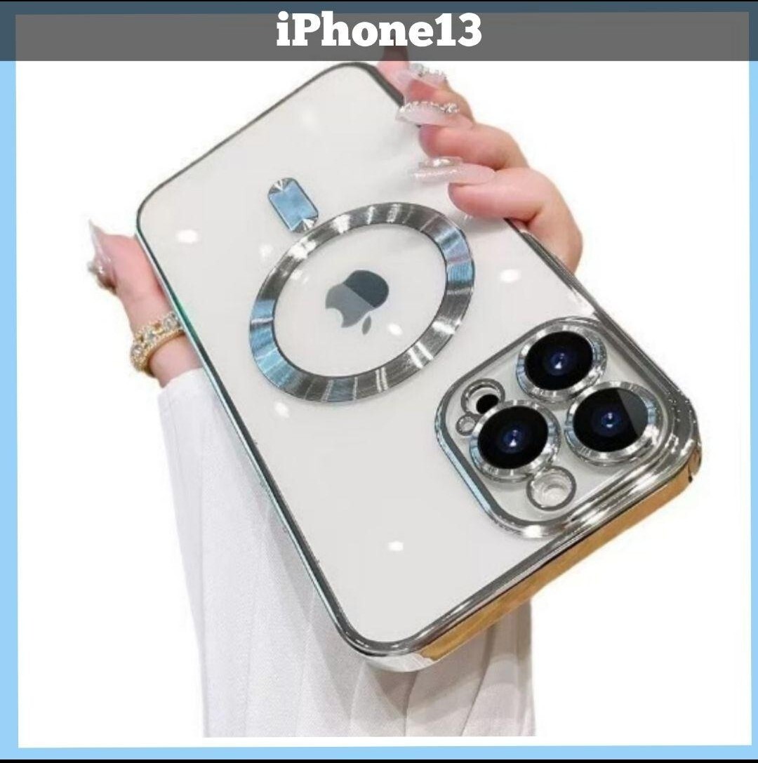 > IPhoneケース iPhone13用ケース クリアケース Magsafe マグセーフ 透明ケース クリアシルバー 耐衝撃 軽量 TPU シルバー