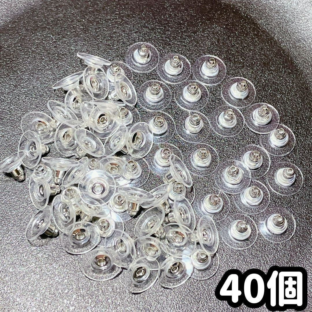- ピアス 下向き防止 円盤 キャッチ シルバー プラスチック 大きい 40個 ディスク 重いピアス 重たいピアスに◎