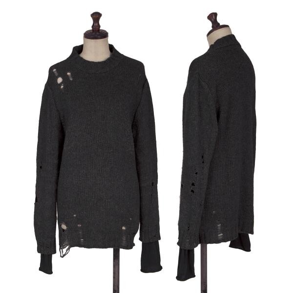 - ディーゼルDIESEL ダメージ加工アルパカナイロンレイヤースリーブニットセーター グレーM位