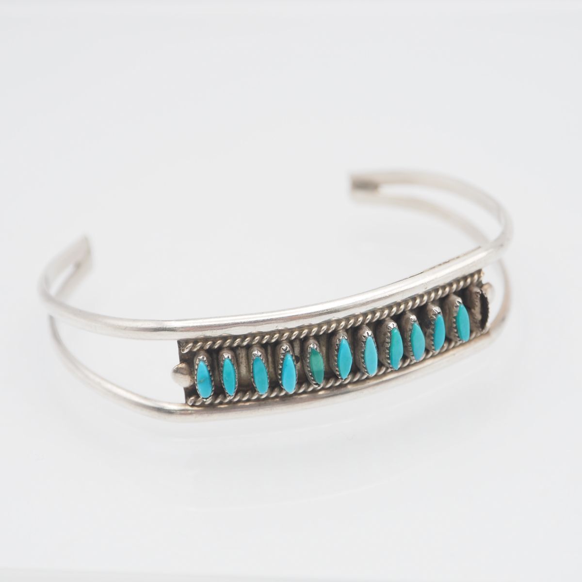 > A225 ナバホ ターコイズ トルコ石 M.Solomon ZUNI刻印 バングル デザイン シルバー 腕輪 ズニ族 インディアンジュエリー12月誕生石