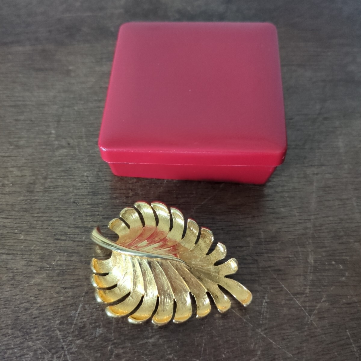 - ゴールドカラー リーフモチーフ ブローチ 葉 ヴィンテージ インポート