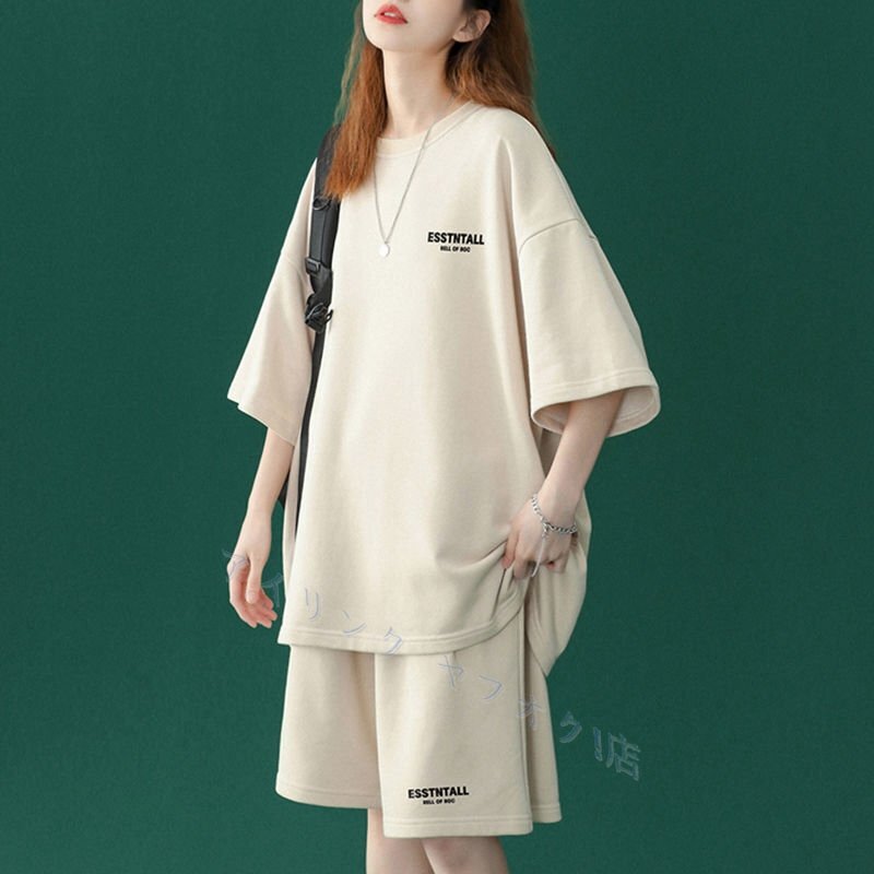 - 上下セット セットアップ レディース 大きいサイズ 夏Tシャツ+ショートパンツ 2点セット丸首 スポーツウェア 半袖4色L-4XL) ベージュ