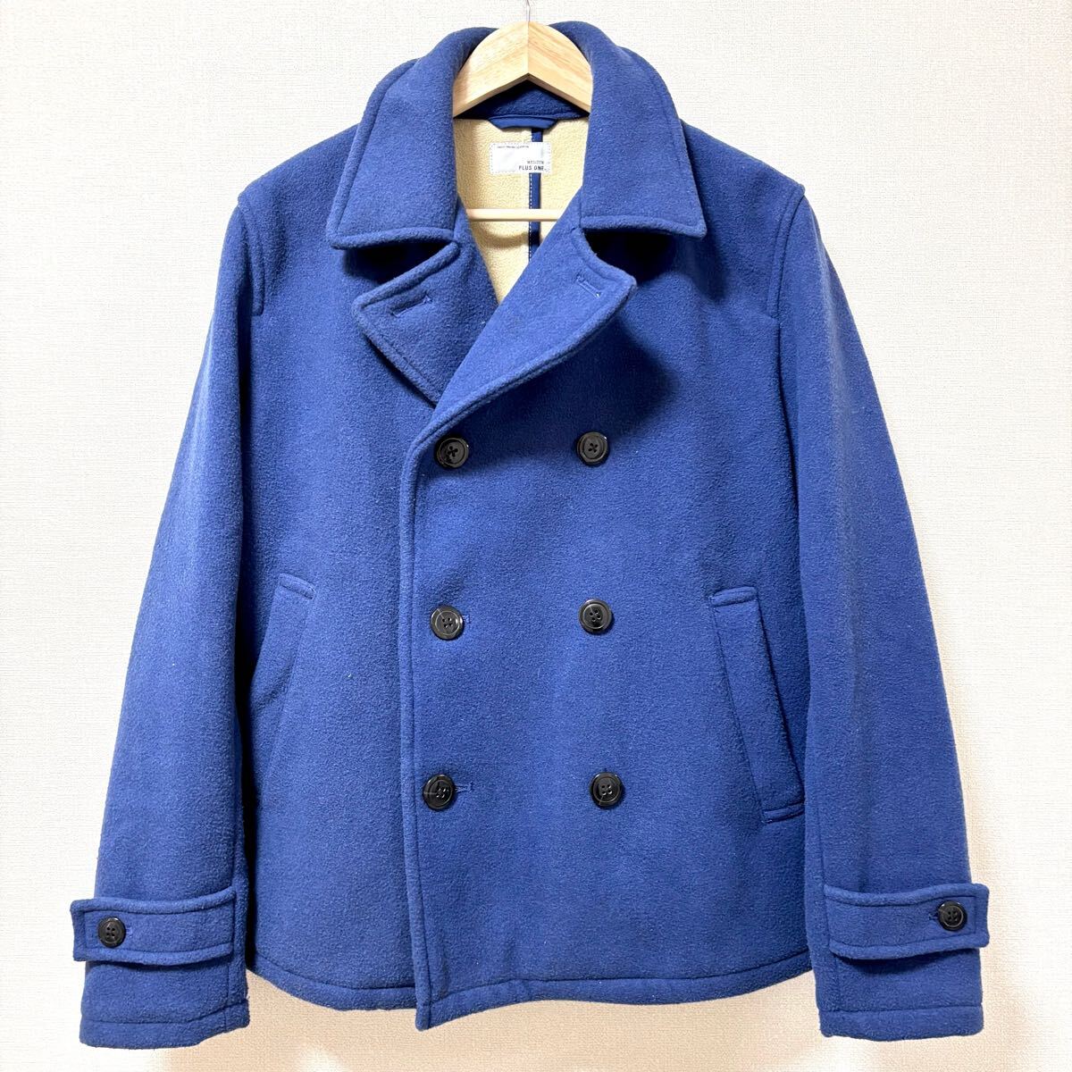 - 厚手◎通学におすすめ!【PLUS ONE】プラスワン ピーコート Pコート ブルー 紺 ウール アウター 防寒 カジュアル メンズ サイズM/Y33208SS