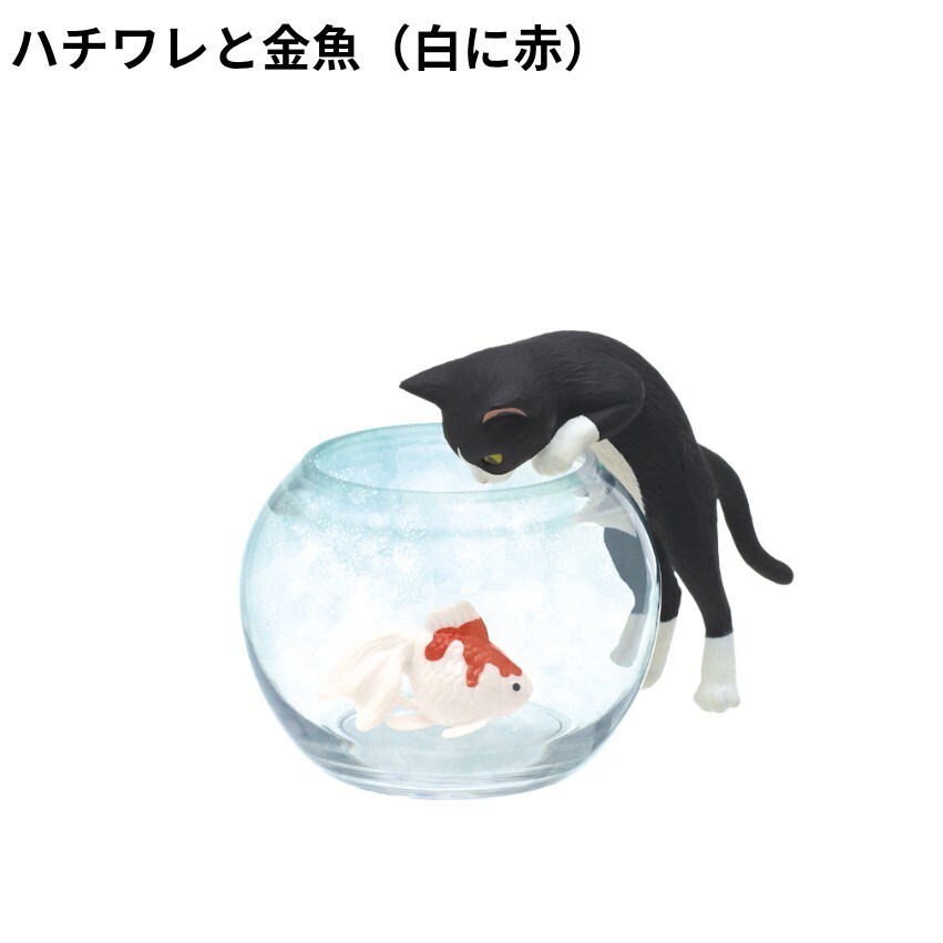- 猫と金魚 ハチワレと金魚 白に赤 カプセルトイ ガチャ ガチャガチャ 猫 ねこ ネコ ハチワレ 金魚鉢 金魚 新品