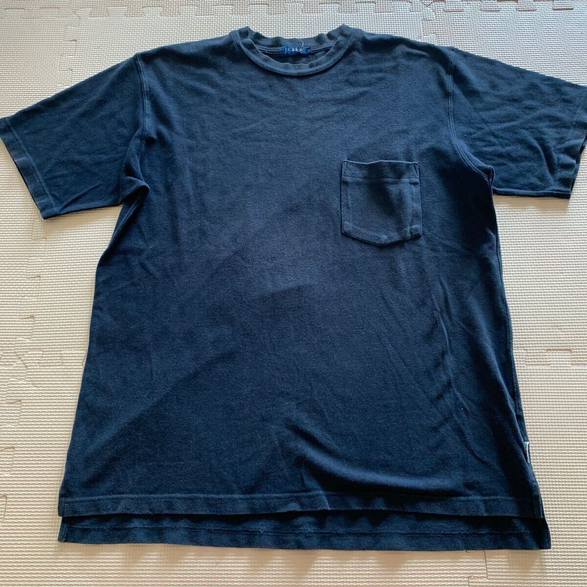 - 00s【J.CREW】ジェイクルー 鹿の子 半袖ポケットTシャツ Mサイズ ネイビー レナウン製造 ポケT