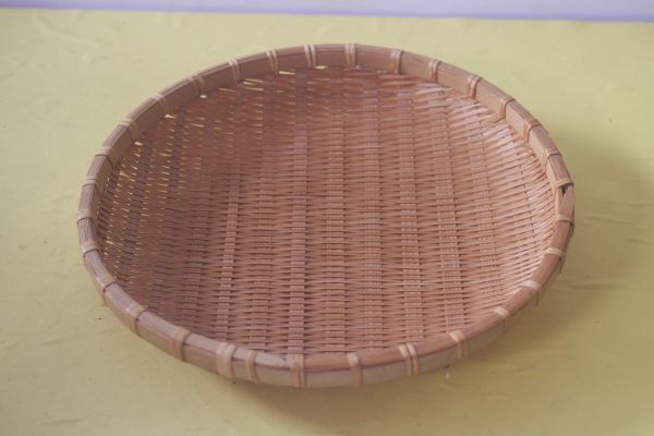 - 竹細工 円の竹ザル かご 自然素材 サイズ:外径27.5×H4.5㎝/26N6.19-27