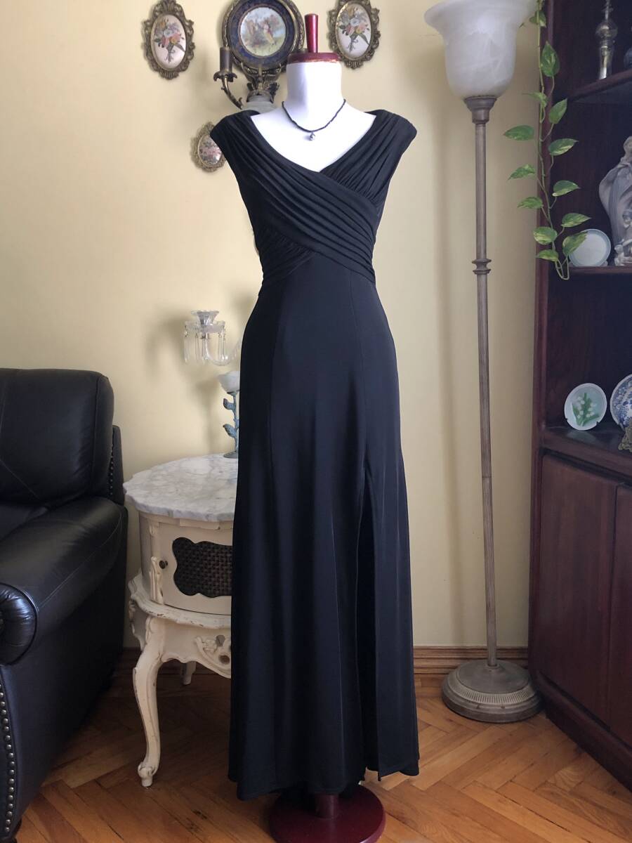 - 【TADASHI SHOJI/タダシショージ】美ドレープ/Aラインフレアー/黒ストレッチ/イブニングドレス (US・S/9号S)#66