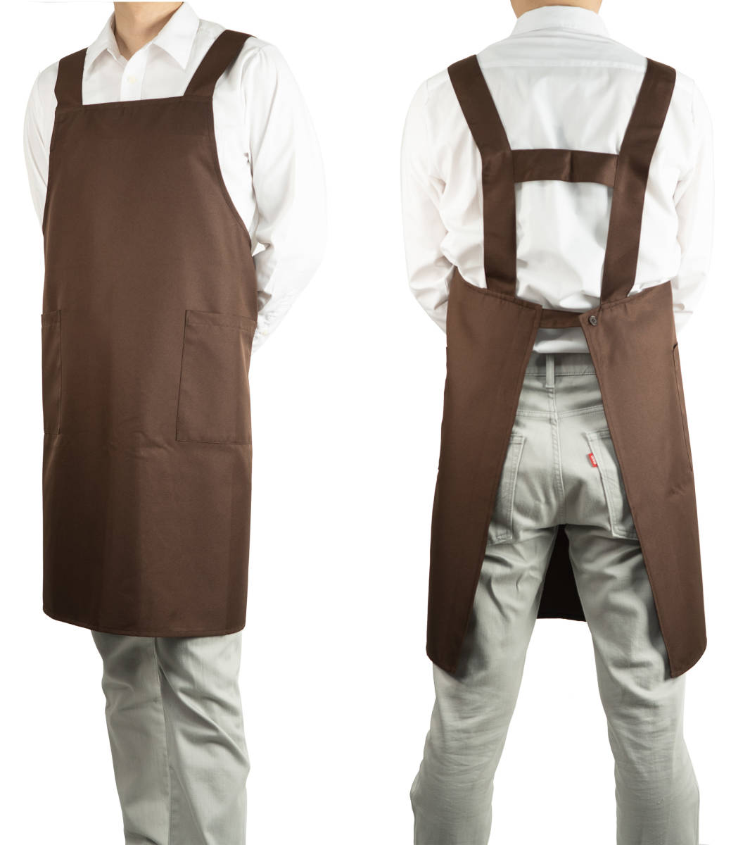 - 2枚セット ブラウンM エプロン H型 首掛け 胸当てエプロン