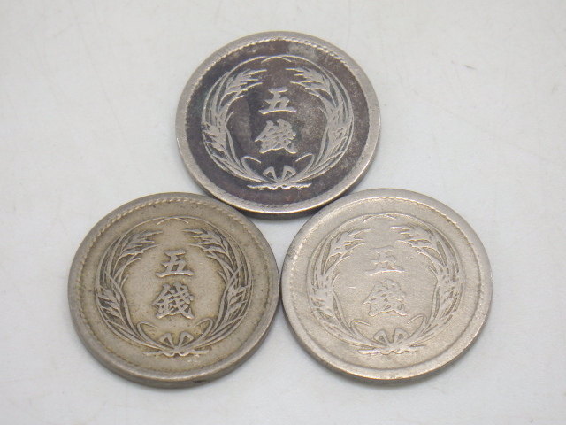 - h5F154Z- 日本 近代貨幣 稲5銭白銅貨 明治30.31.34年 計3枚