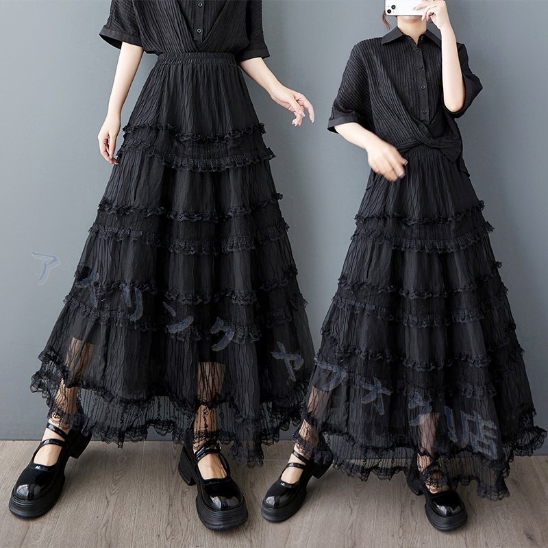 - 新品★夏 カジュアル 20304050代 ウエストゴム レース ロングフレアスカート