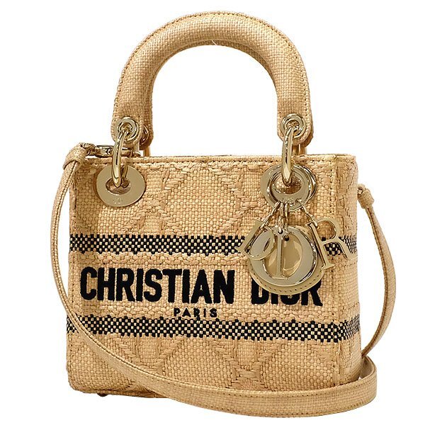 - 送料無料 本物 注目 DIOR ディオール レディD-Liteバックミニ ラフィア素材 ナチュラル×ブラック 2WAY レディース カナージュ ショルダー