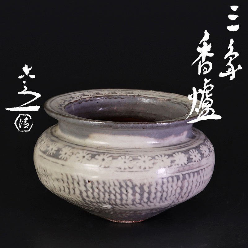 - ★【古美味】六代清水六兵衛 三島香炉 茶道具 保証品 2hCJ