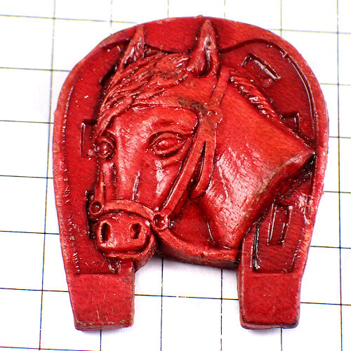 - ピンバッジ・馬と蹄鉄レザー革製◆フランス限定ピンズ◆レアなヴィンテージものピンバッチ