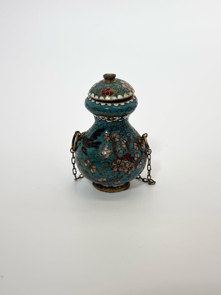 - 【希少】アンティーク 中国七宝 薬入れ 蓋物 ミニチュア ミニサイズ ネックレストップ ペンダント 花鳥文