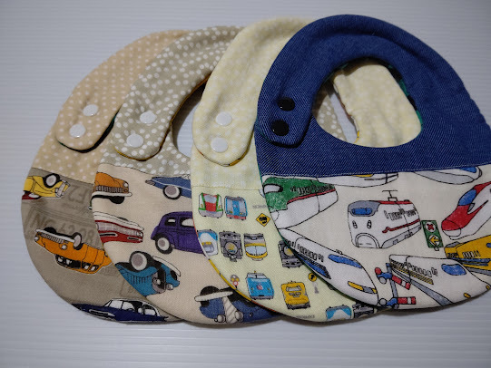 - ☆男の子乗り物 前ボタン10重ガーゼふんわりハンドメイドスタイ 4枚セット 62