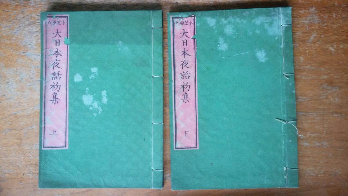 - 小笠原長道『大日本夜話初集 上下』明治7年 京都書林 勝邨治右衛門 記名・小虫食いあり、比較的良好です Ⅵ2函A