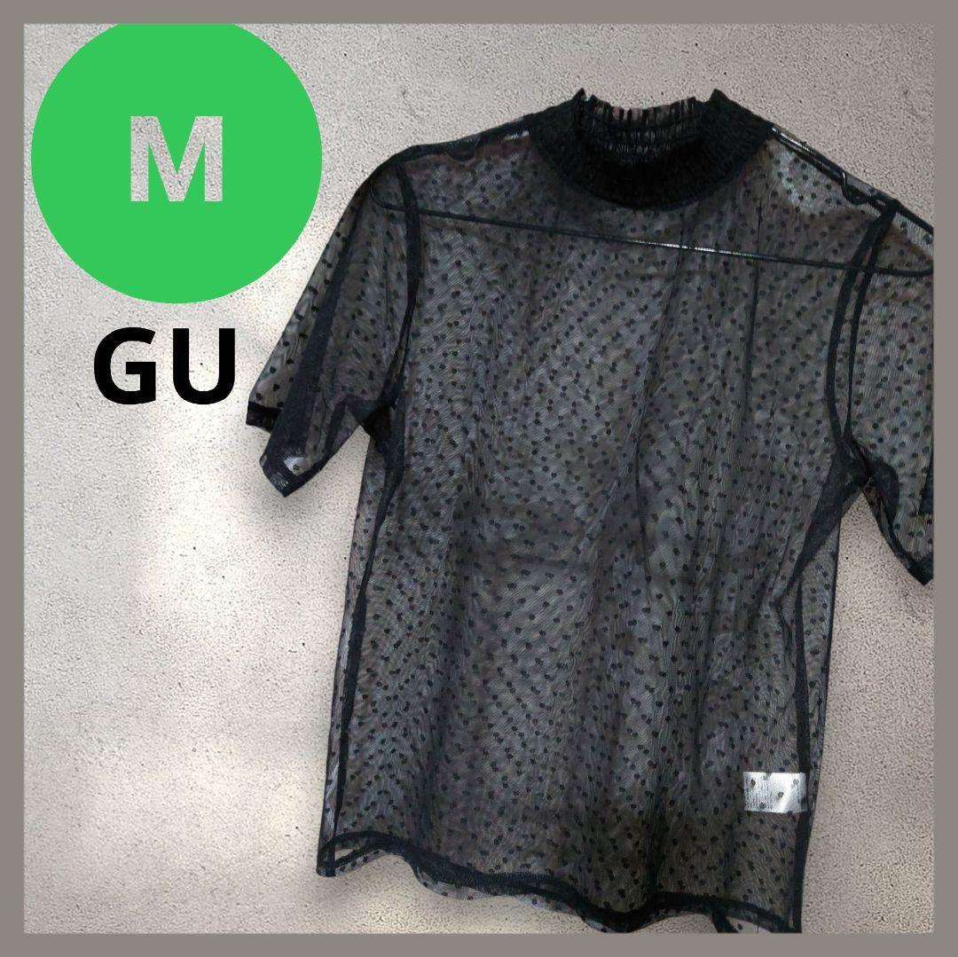 - GU ブラック ドット柄 半袖 M シースルー 重ね着 透け感