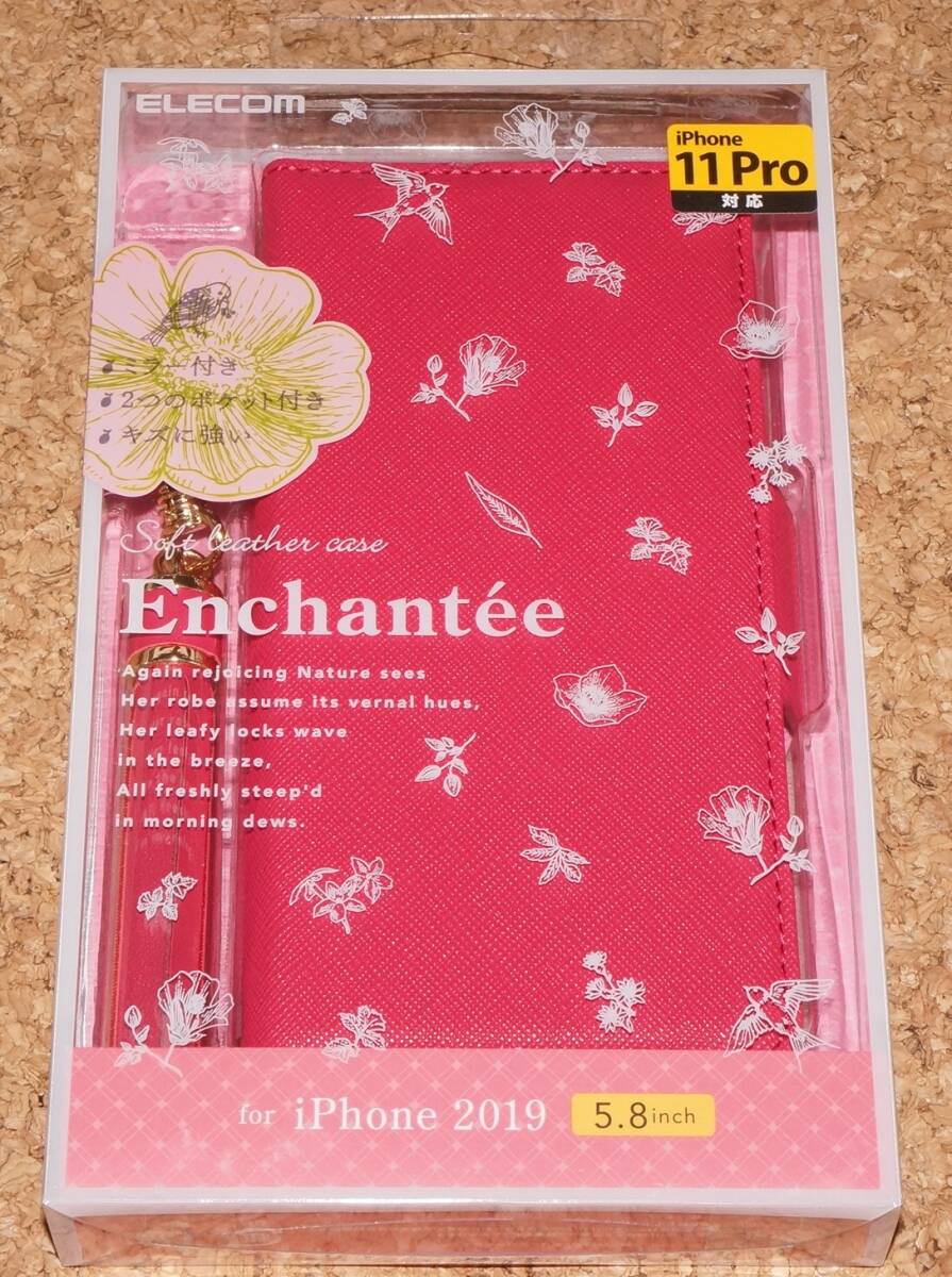 > ★新品★ELECOM iPhone11 Pro レザーケース Enchantee ミラー&タッセル付き ディープピンク