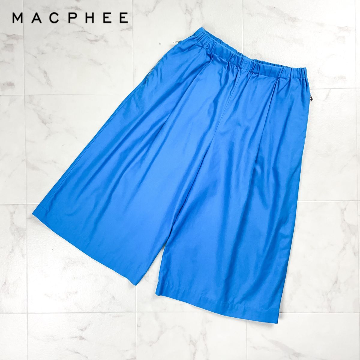 > 美品 MACPHEE マカフィー トゥモローランド コットンワイドギャザーハーフパンツ ガウチョ ボトムス レディース ブルー 青 サイズ38*CD614