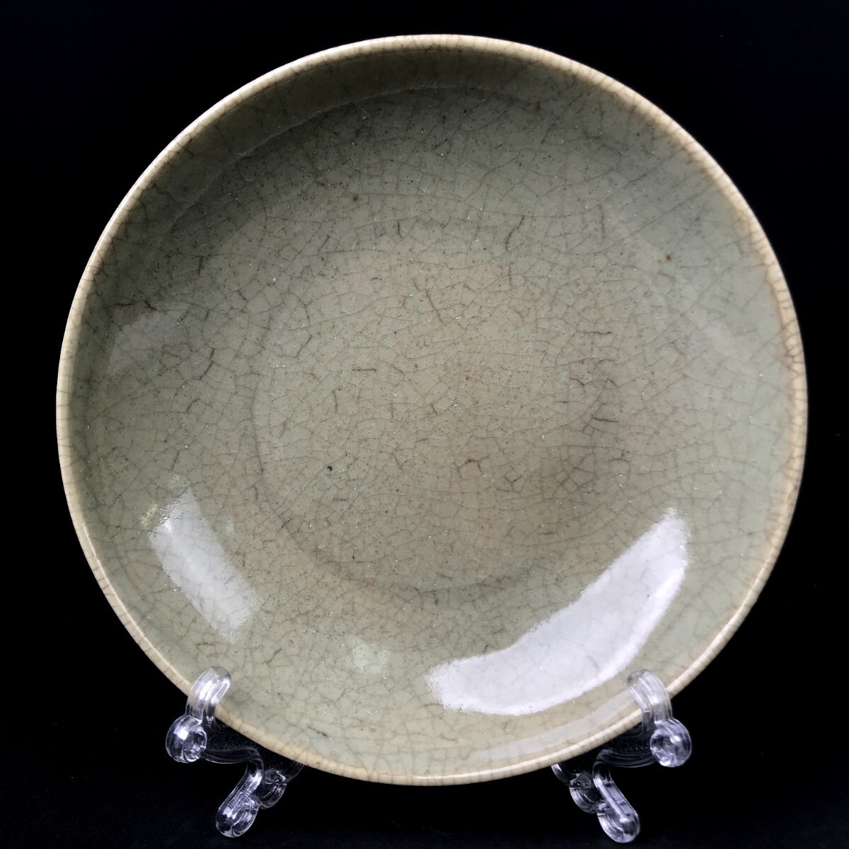 - 中国古陶磁 汝窯風 青灰釉 開片 大皿 唐物 骨董 宋時代写風 古美術 骨董 青磁 古玩 時代物 大皿 唐物