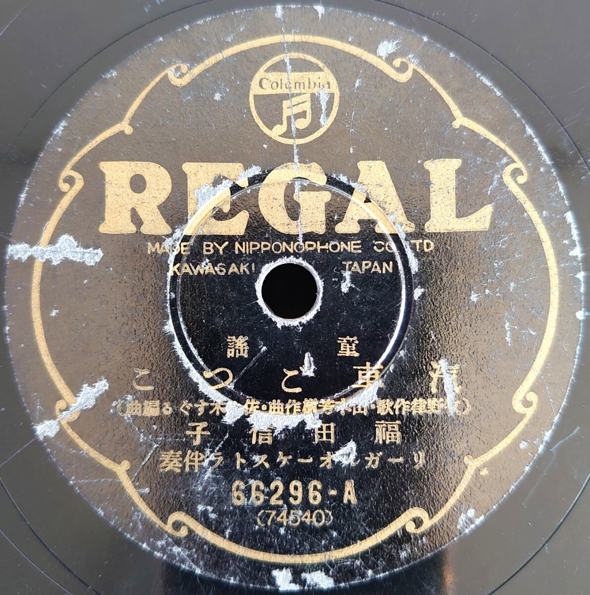 - 【SP盤レコード】REGAL 66296 童謠/汽車ごつこ-汽車ごっこ/繪日傘-絵日傘/福田信子-福田信子