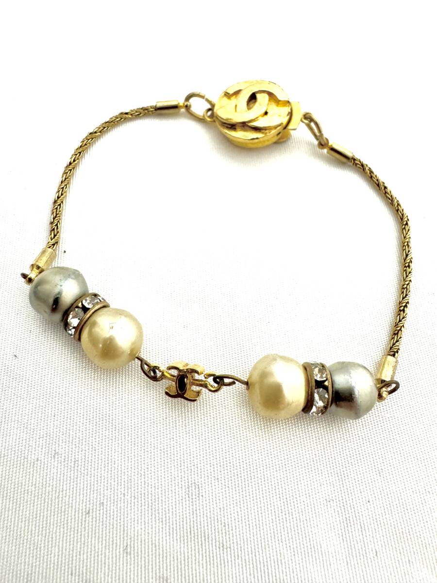 - 7F2910【本物保証】シャネル ブレスレット ココマーク ゴールド フェイク パール 489 vintage CHANEL
