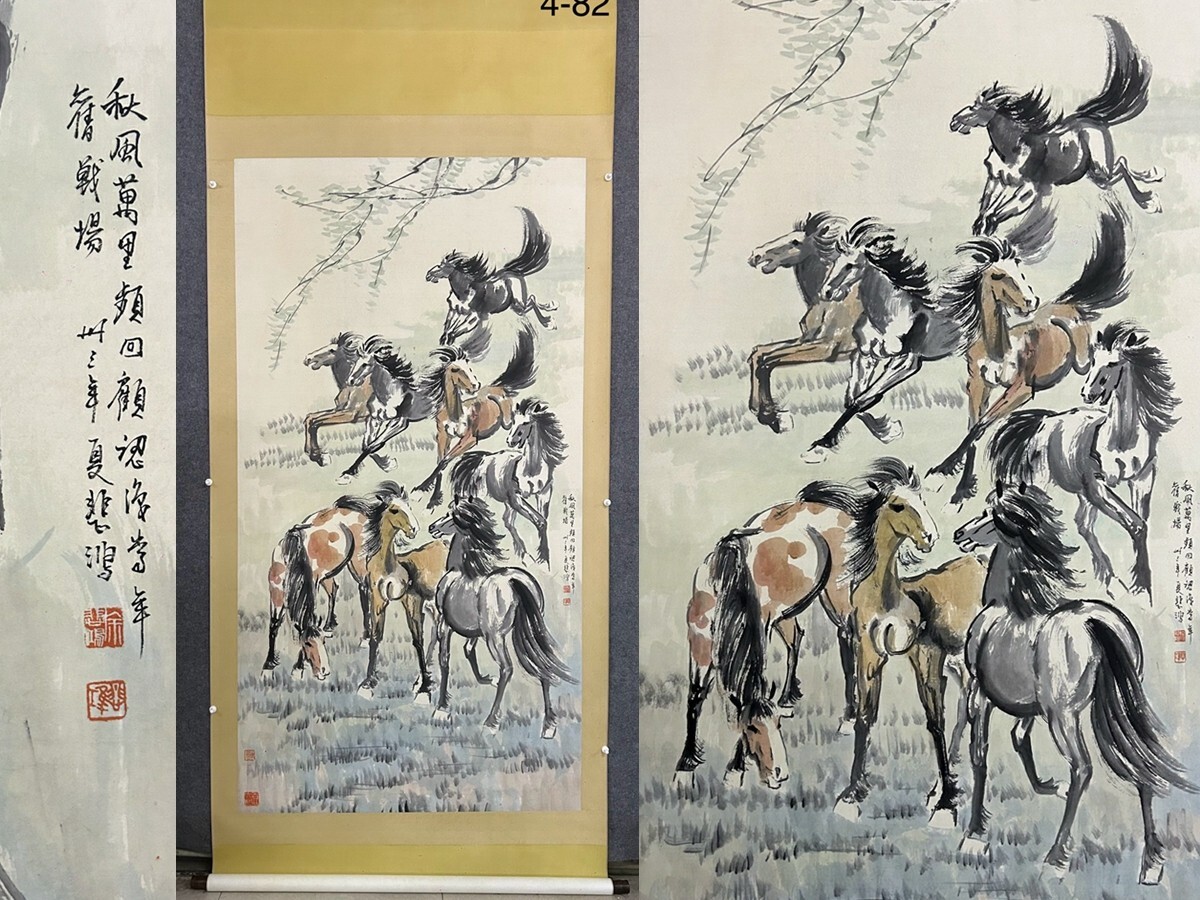 - 中国書画「徐悲鴻 秋風萬里 駿馬図」肉筆紙本 掛け軸 墨寶妙品 書画立軸 巻き物 古美術 旧蔵出