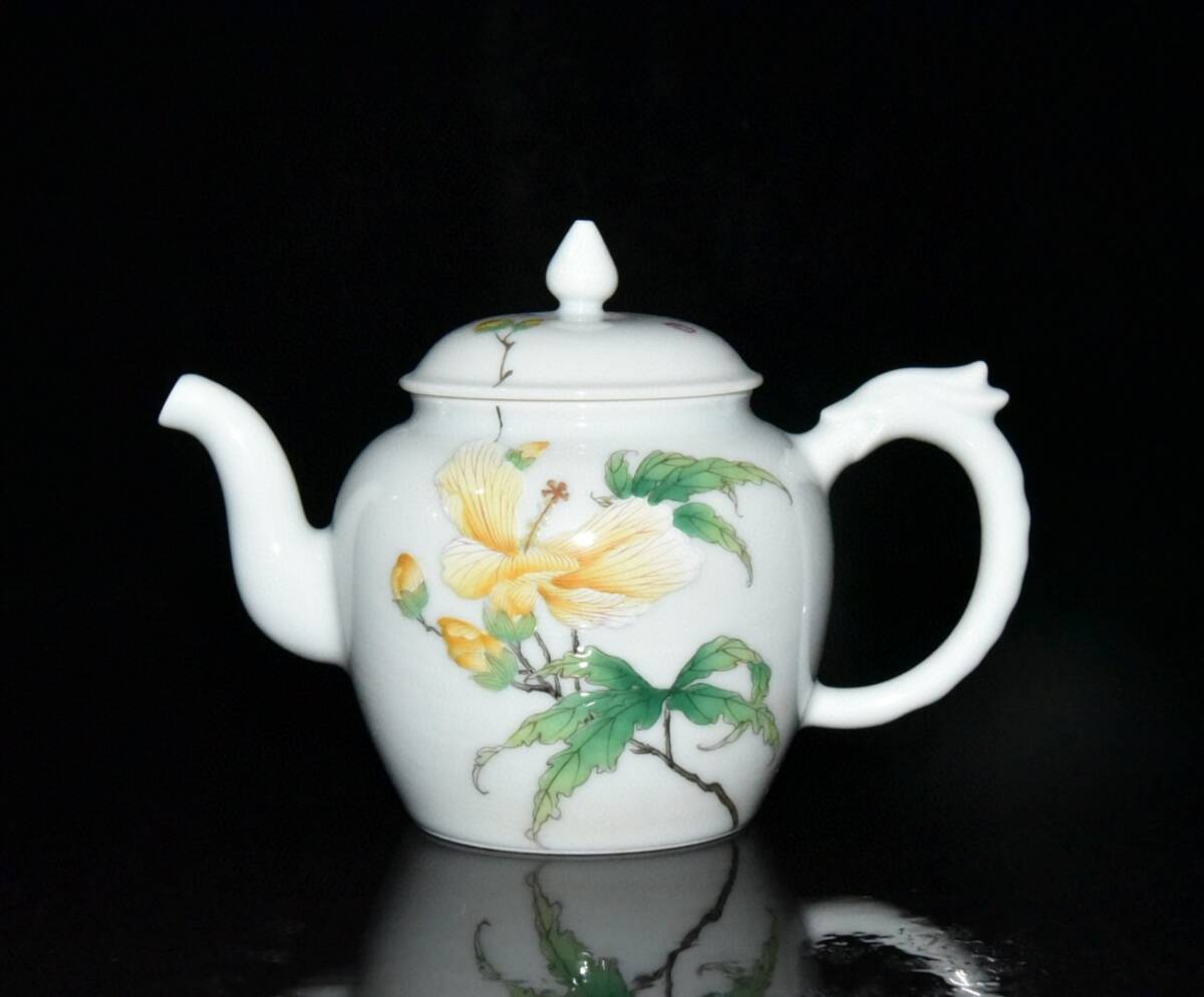 - 【仁】『 清・雍正年製款・古陶瓷品・琺瑯彩・花卉紋・酒壺・陶藝』極細工 古董品 中国古玩 古美術 古美味 時代物 旧家蔵出