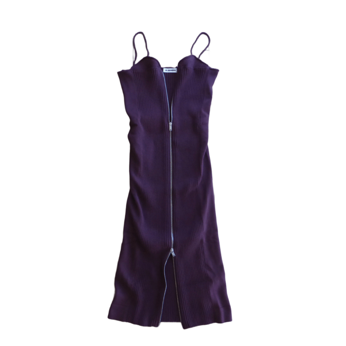 - ジルサンダー (JIL SANDER) コットン リブ ニット キャミソール ワンピース フロントジップ 34 マホガニー J02CT0310 ウェア(新品)