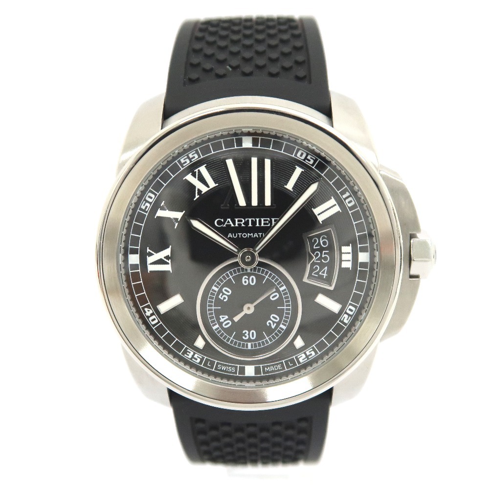 > IT74791 カルティエ 腕時計 カリブルドゥカルティエ W7100041 自動巻き デイト ブラック文字盤 ラバーベルト メンズ CARTIER 美品