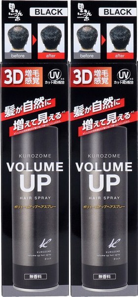 - 2本 黒染 ボリュームアップヘアスプレー ブラック 無香料 150g 髪が自然に増えて見えます。簡単、瞬間 増毛感覚です。